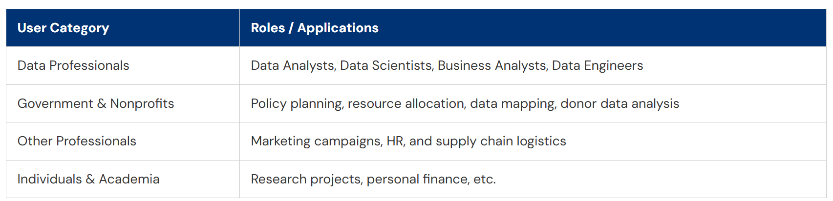 Below is a table showcasing the use of data analytics and different roles that utilize it.