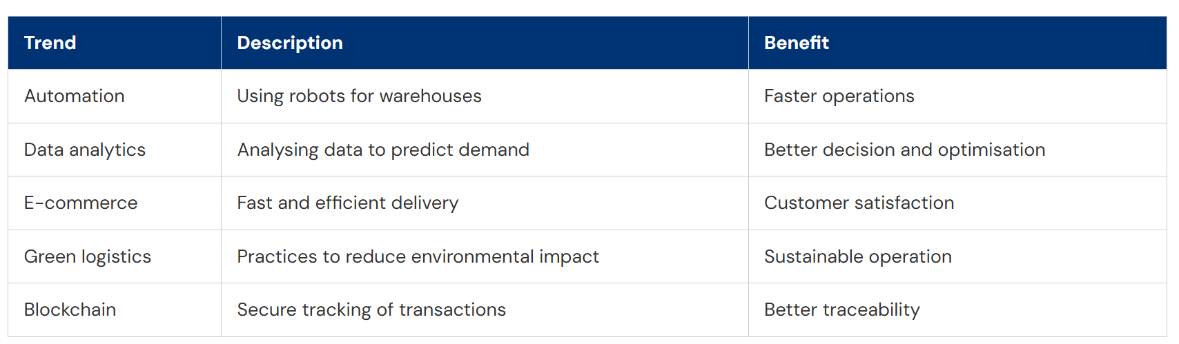 The key trends of logistics and their benefits in the digital age are as follows: