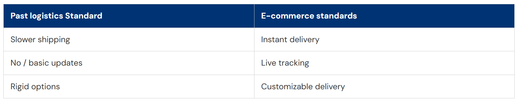Here is a comparison of how e-commerce has shifted the consumer expectations.